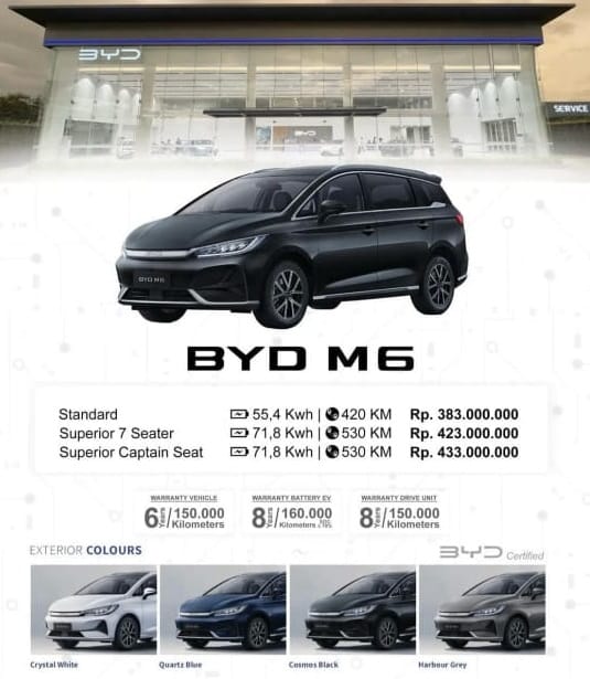 Kami hadir dengan berbagai fasilitas yang lengkap, memberikan pengguna pengalaman yang menyeluruh dan memenuhi berbagai kebutuhan. Beberapa fasilitas unggulan yang dapat ditemui di BYD Arista antara lain: Varian produk, Infrastuktur Charging, Teknologi Terkini, Layanan Purna Jual, Dukungan Pelanggan, dan Suku Cadang